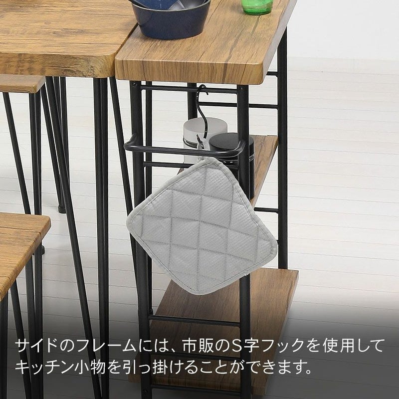 市販のS字フックを使用して、キッチン小物を引っ掛けることができます。