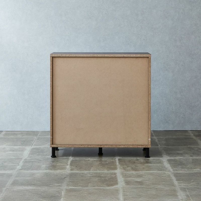 異素材の組み合わせがモダンな雰囲気を演出し、玄関収納家具として落ち着いた空間を演出します。