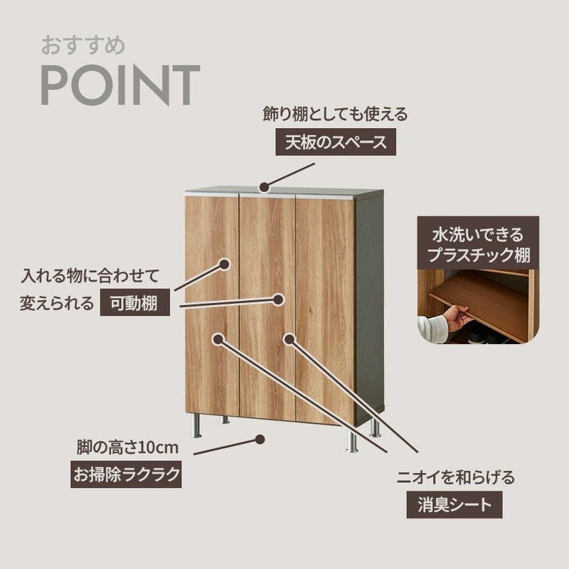 砂や泥がついた靴も収納でき、清潔を保ちやすい玄関収納家具です。