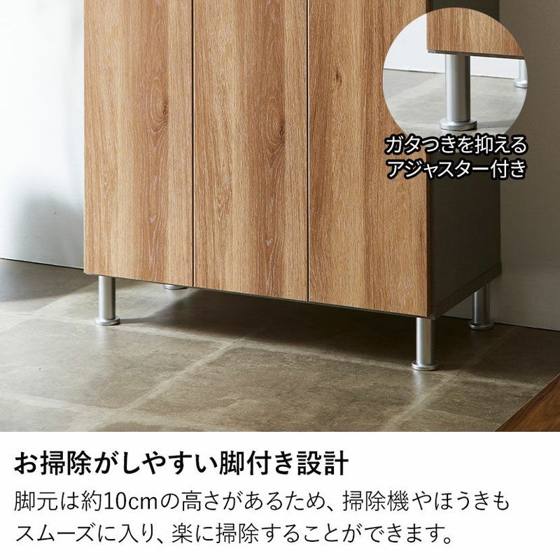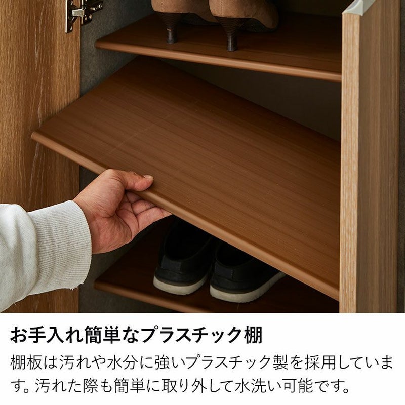 スニーカーからパンプスまで効率よく収納しやすく、棚を外せばブーツなどの背の高い靴も収納可能です。