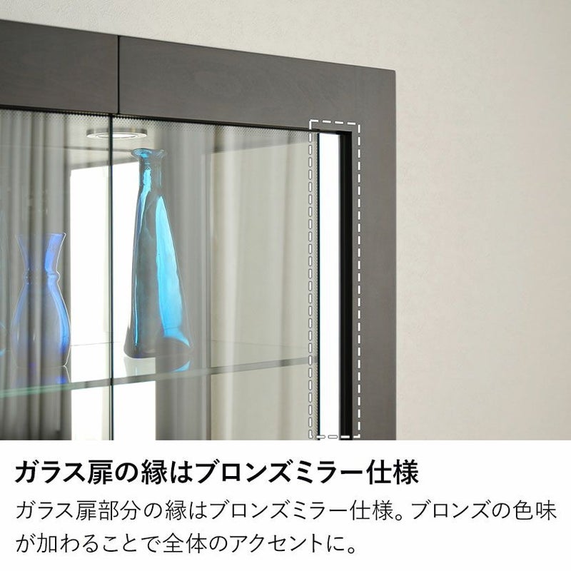 ガラス扉部分の縁はブロンズミラー仕様。ブロンズの色味が加わることで全体のアクセントに。