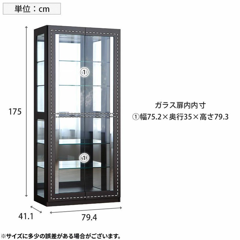 開き扉内のサイズは上下ともに幅75.2×奥行35×高さ79.3cm。様々なコレクションを飾ることが可能です。