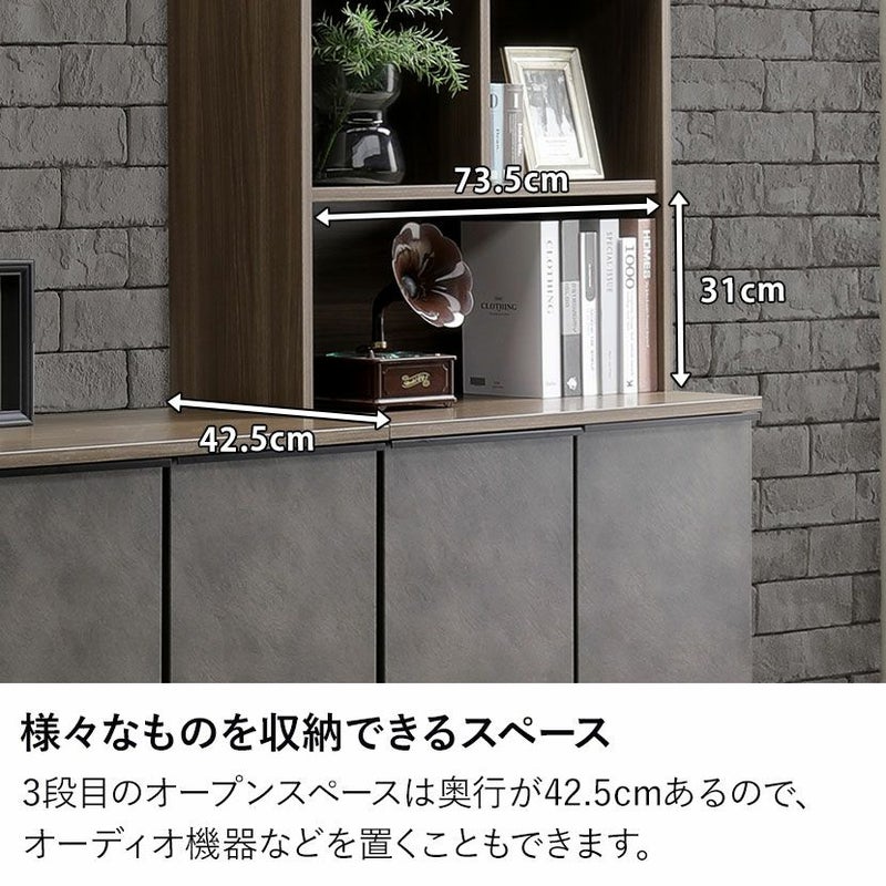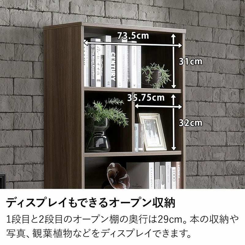1段目と2段目のオープン棚の奥行は29cm。本の収納や写真、観葉植物などをディスプレイできます。