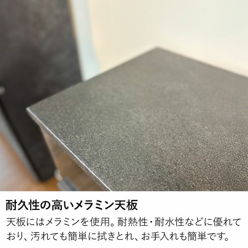 天板にはメラミンを使用。耐熱性・耐水性などに優れており、汚れても簡単に拭きとれ、お手入れも簡単です。
