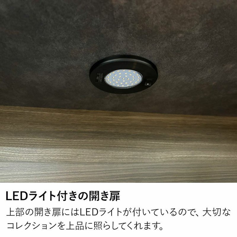 上部の開き扉にはLEDライトが付いているので、大切なコレクションを上品に照らしてくれます。
