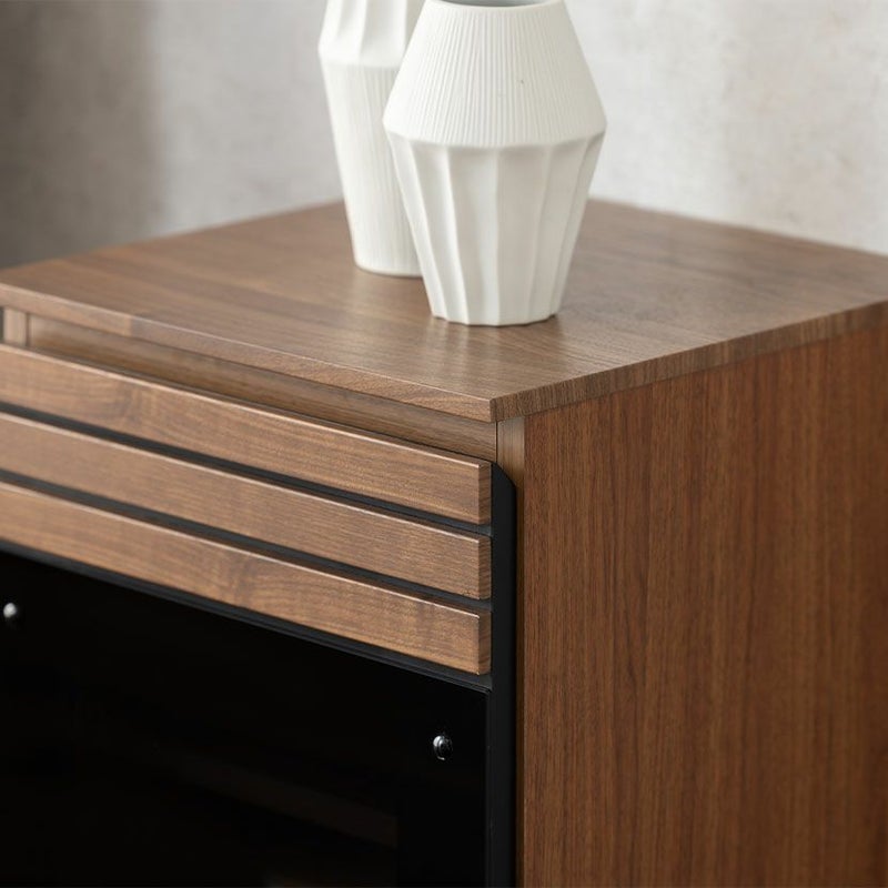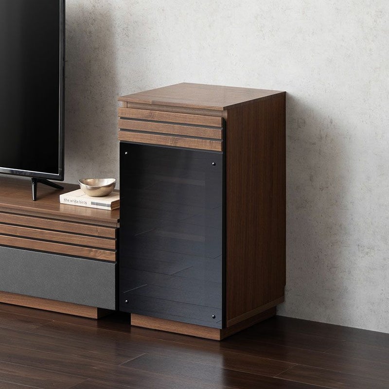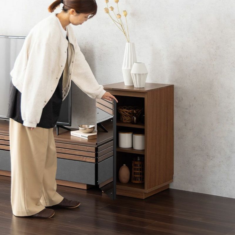 ●木目調とセラミック調を融合させた、和モダン風なデザインが特徴のリビングボードシリーズです。