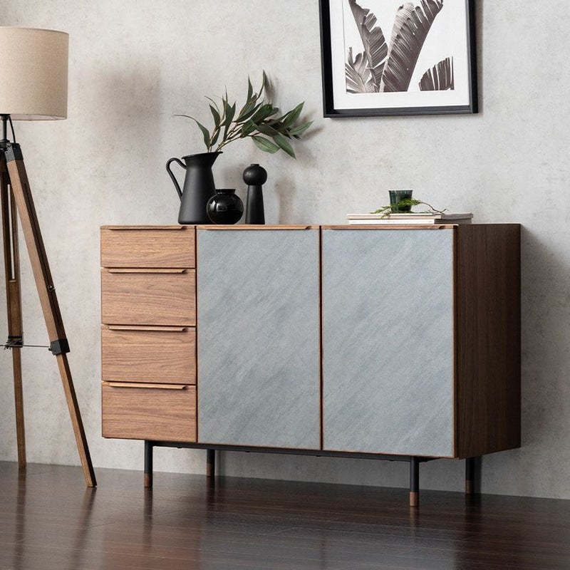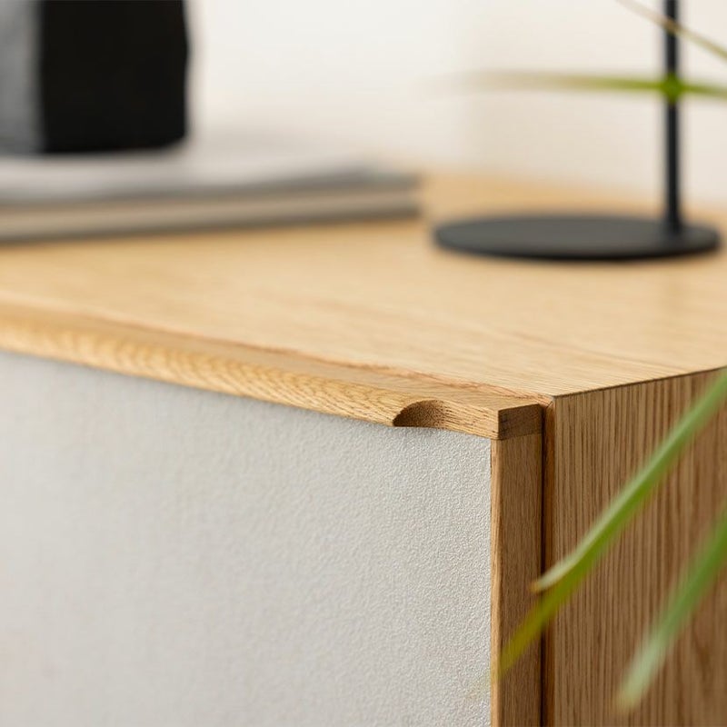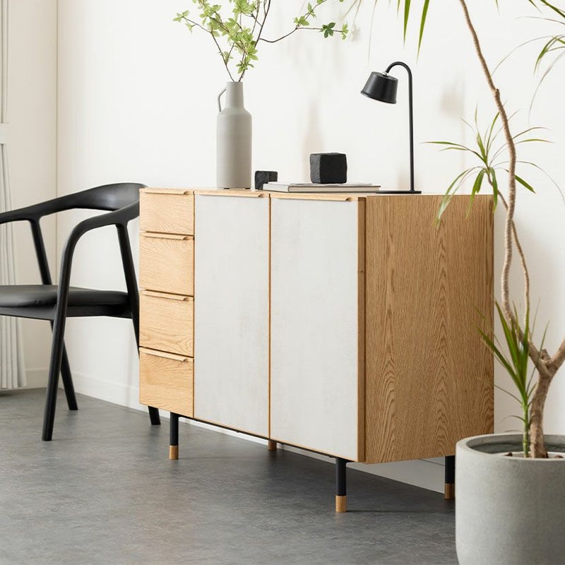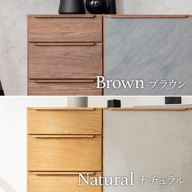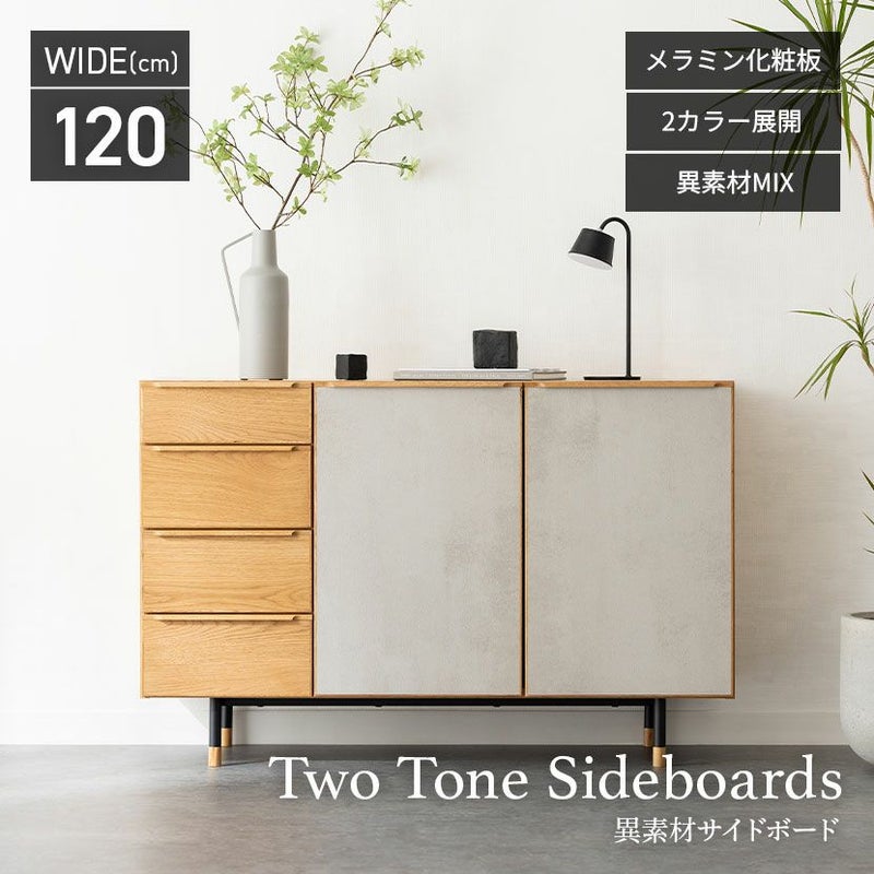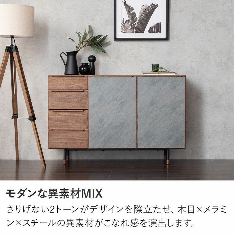 さりげない2トーンがデザインを際立たせ、木目×メラミン×スチールの異素材がこなれ感を演出します。