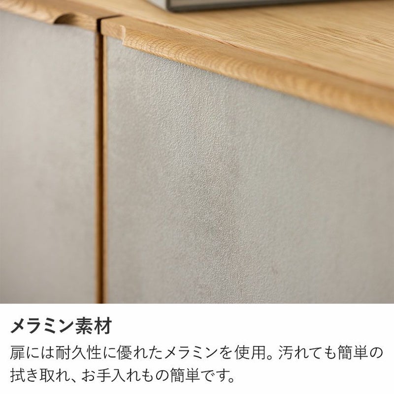 扉には耐久性に優れたメラミンを使用。汚れても簡単の拭き取れ、お手入れもの簡単です。