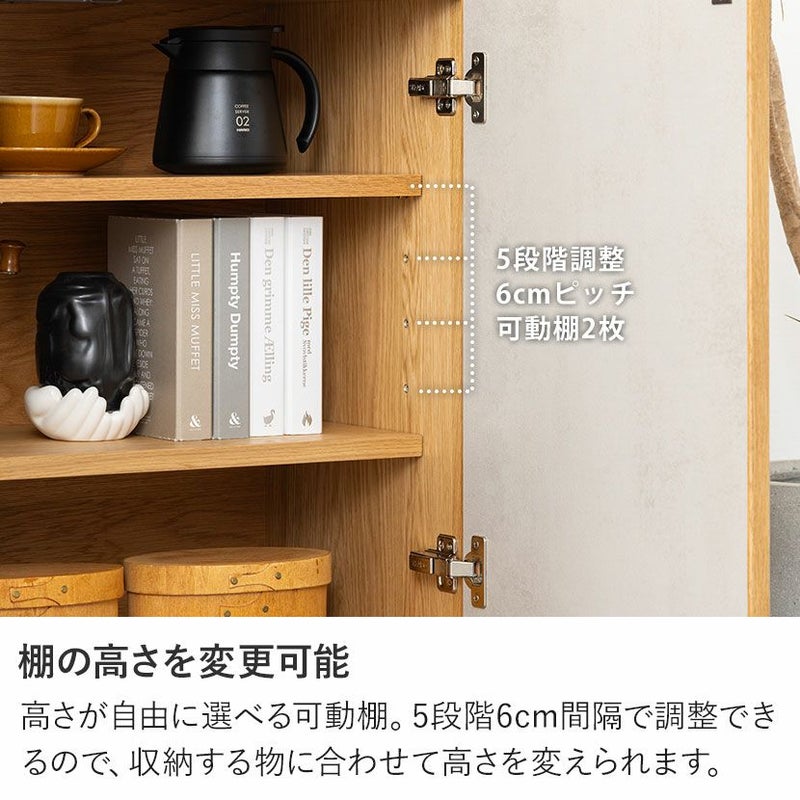 高さが自由に選べる可動棚。5段階6cm間隔で調整できるので、収納する物に合わせて高さを変えられます。