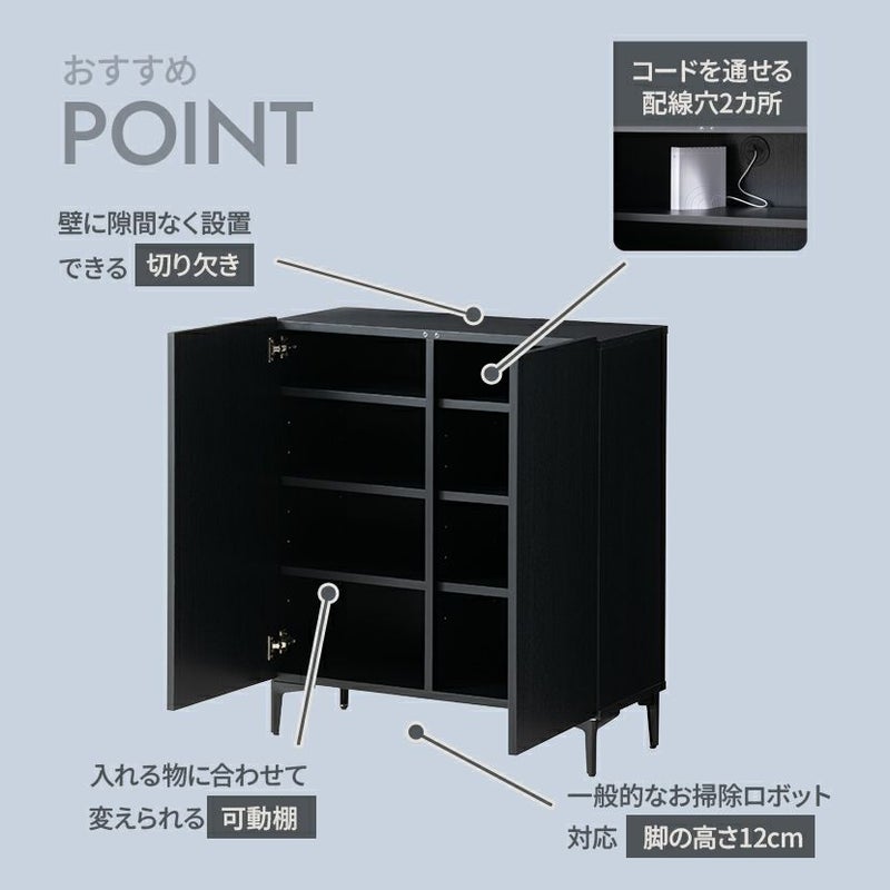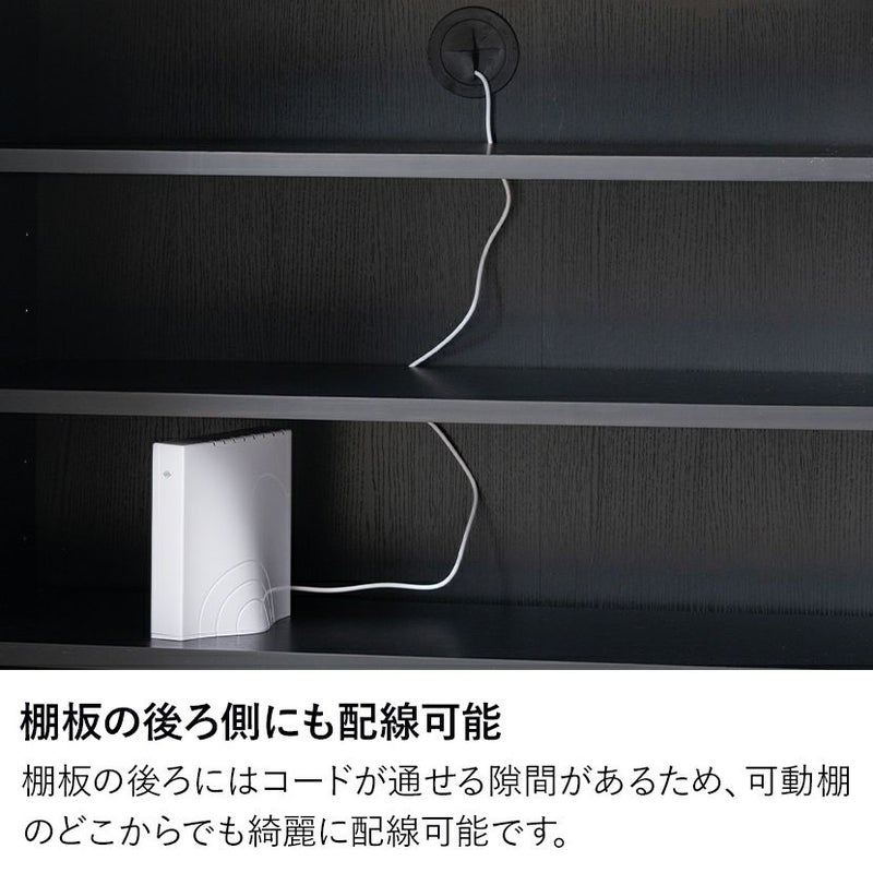 棚板の後ろにはコードが通せる隙間があるため、可動棚のどこからでも綺麗に配線可能です。