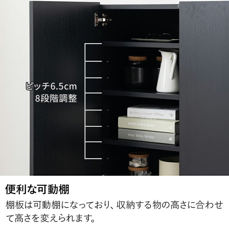 棚板は可動棚になっており、収納する物の高さに合わせて高さを変えられます。