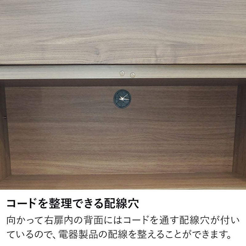 向かって右扉内の背面にはコードを通す配線穴が付いているので、電器製品の配線を整えることができます。