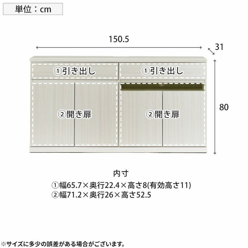 開き扉部分の棚板は全て可動棚となっており、収納物の大きさによって棚の高さを変えることができます。