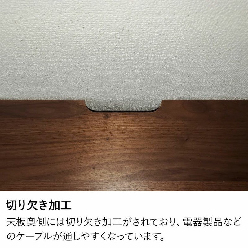 天板奥側には切り欠き加工がされており、電器製品などのケーブルが通しやすくなっています。