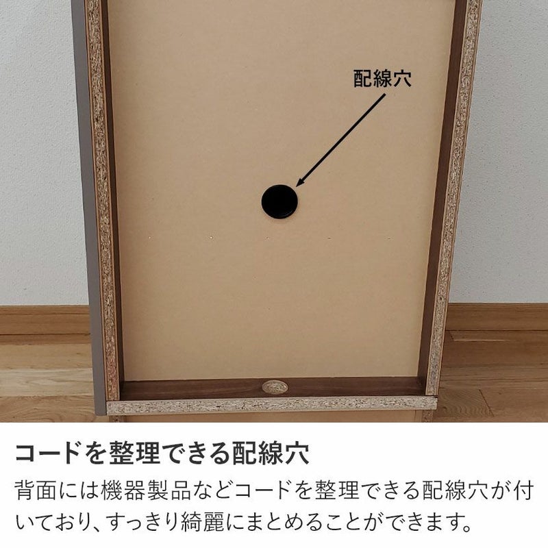 背面には機器製品などコードを整理できる配線穴が付いており、すっきり綺麗にまとめることができます。