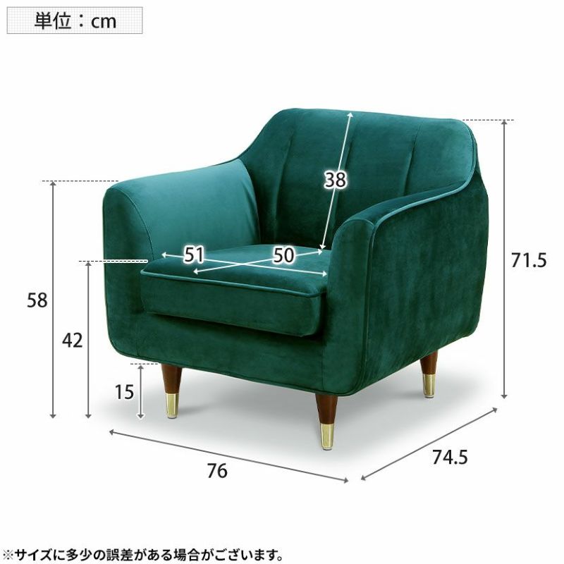 丸いフォルムと美しいベルベット生地が心くすぐるソファ。落ち着いたカラーで上品にお部屋を彩ります。