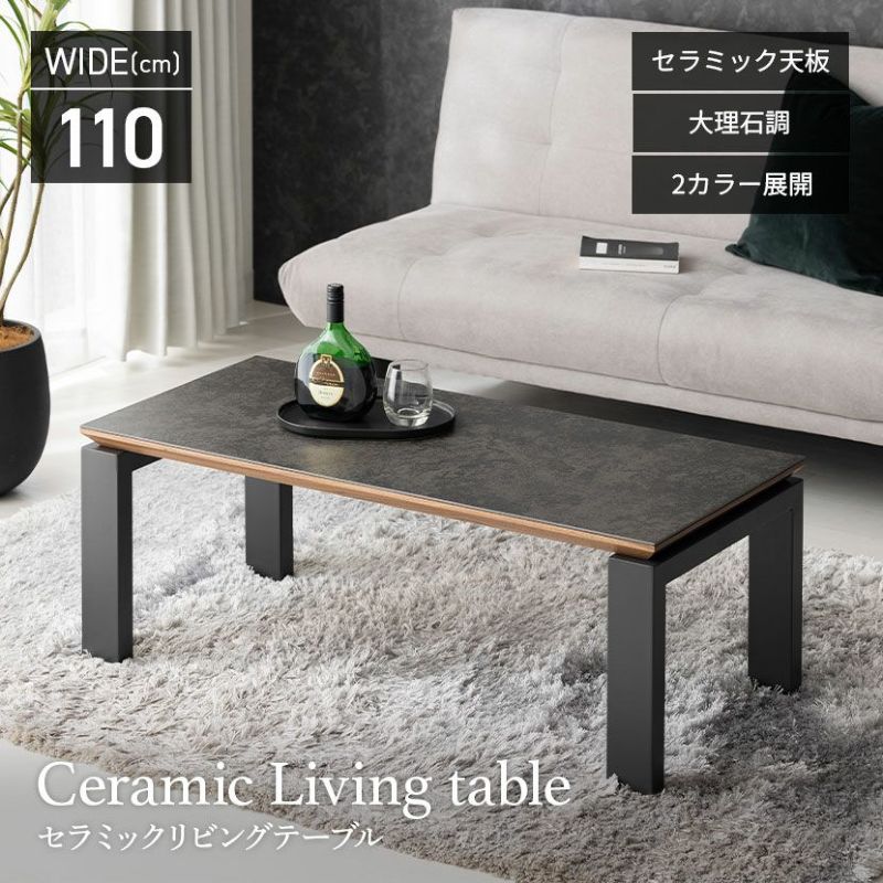 大理石風のセラミック天板がインパクト大のリビングテーブル。高級感溢れるリビング空間を演出します。