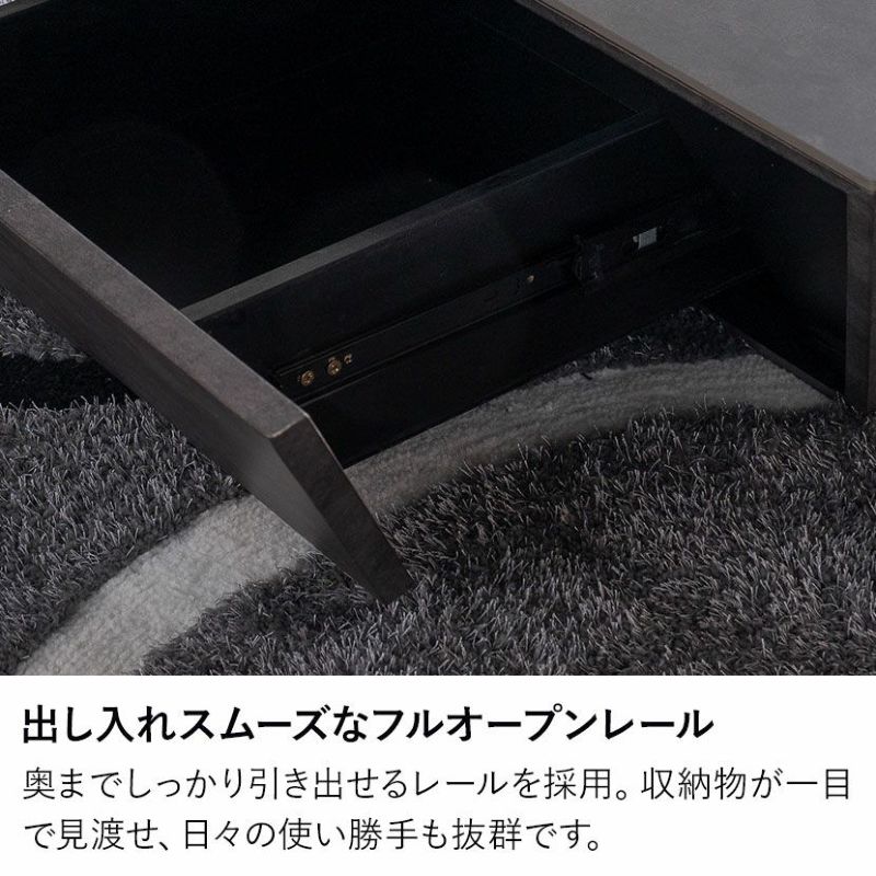 デザインを損なわないよう配置された引き出しは、リモコンや眼鏡、雑誌などの小物を整理するのに最適です。