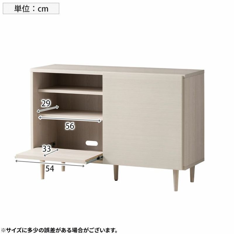 スライド扉内の最下段には、プリンターなどの収納に便利なスライドテーブルが付いています。