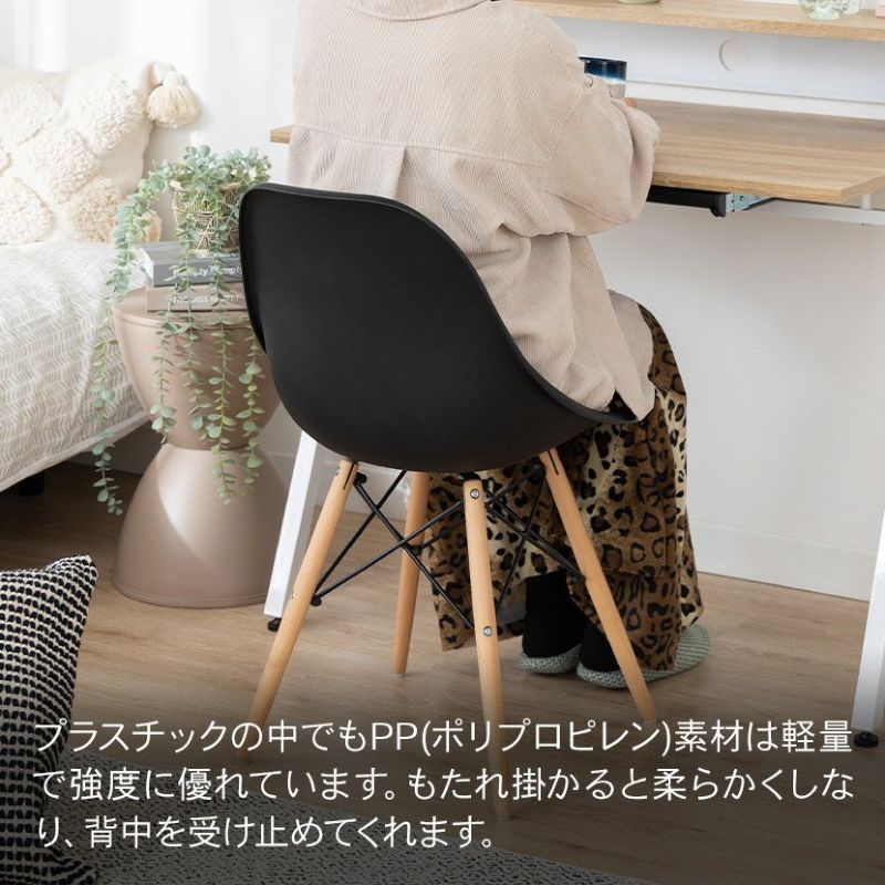 シンプルな形状で置く場所を選ばないので、ダイニングだけでなく、リビングのデスクチェアとしても活躍します。