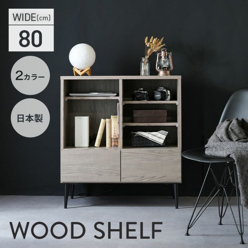 【設置無料】幅80cm シェルフ 日本製 木目調 ラック オープン 収納 引き出し 棚 リビング収納 脚付き キャビネット リビングボード 飾り棚 おしゃれ シンプル モダン
