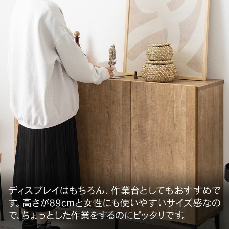 ディスプレイはもちろん、作業台としてもおすすめです。高さが89cmと女性にも使いやすいサイズ感なので、ちょっとした作業をするのにぴったりです。