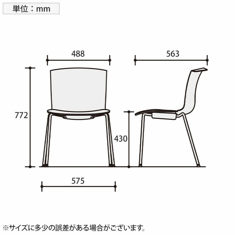 | 材質 | 背・座 / ポリプロピレン 脚 / スチール丸パイプ(直径17.3mm)、焼付塗装 |