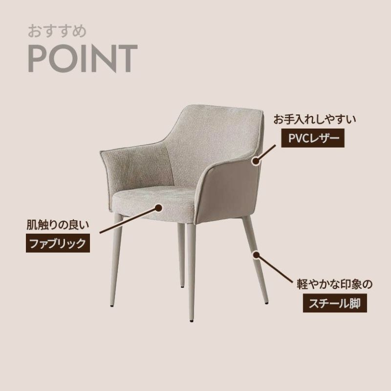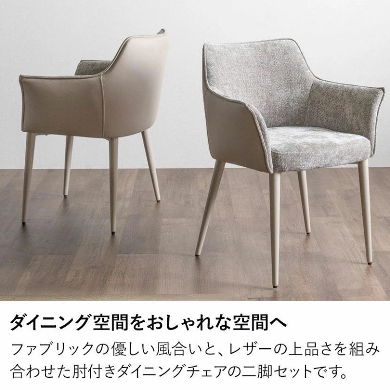 【2脚セット】ダイニングチェア 肘付き ファブリック PU 食卓椅子 チェア おしゃれ 可愛い ツートン シンプル モダン スチール ベージュ グレー