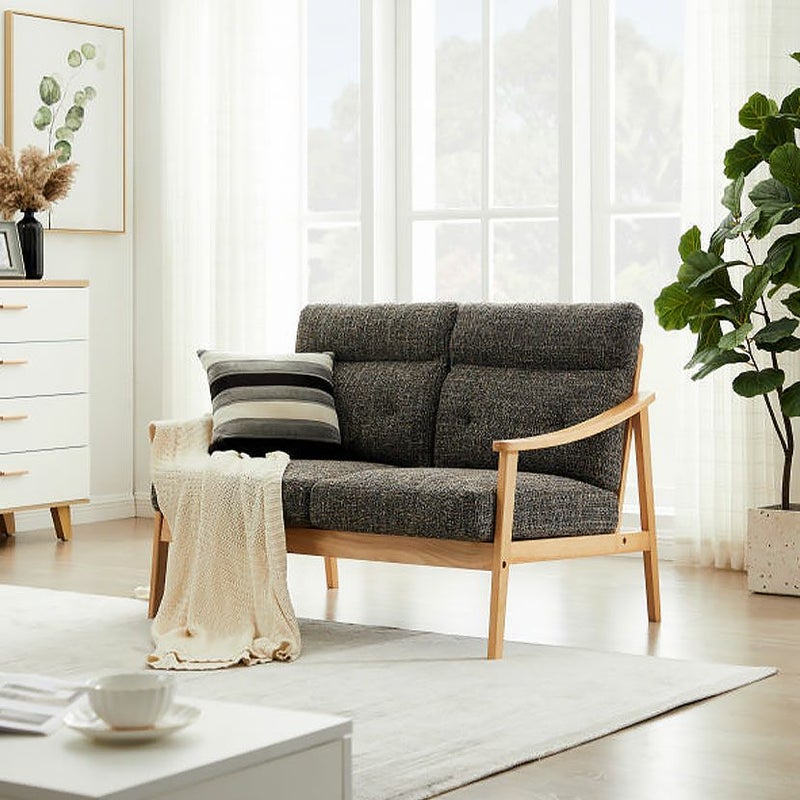 美しい天然木フレームを採用した、北欧テイストの2人掛けソファ。