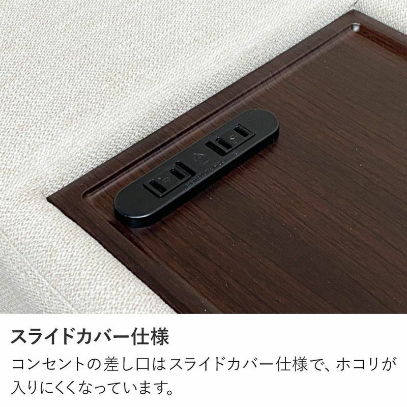 肘掛け部分にテーブルと2口コンセントが付いています。