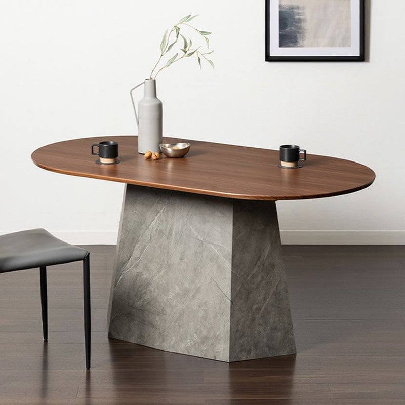 温かみのある木目調の天板と、重厚感のある大理石調の脚を組み合わせました。
