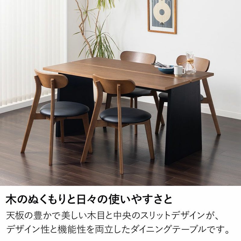 幅150cm 木製 ダイニングテーブル 天然木 アッシュ 長方形 北欧モダン テーブル 4人 食卓テーブル おしゃれ 2本脚 黒脚 配線スリット付き シンプル ナチュラル ブラウン