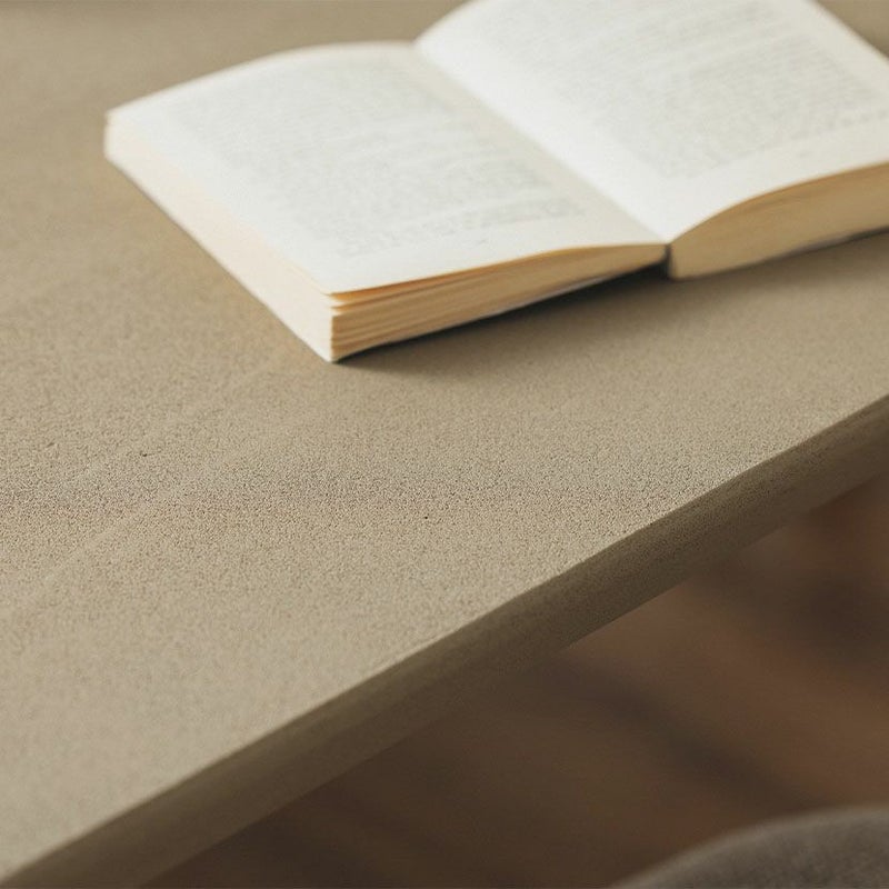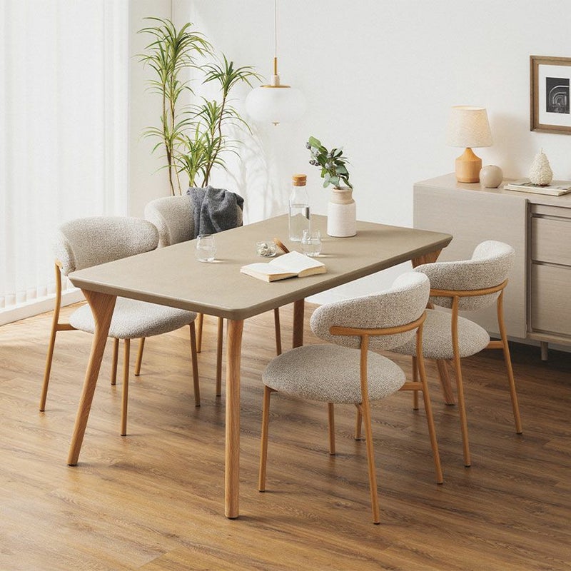 重厚感のあるモルタル天板と、あたたかみのある木脚を組み合わせた、異素材のダイニングテーブルです。
