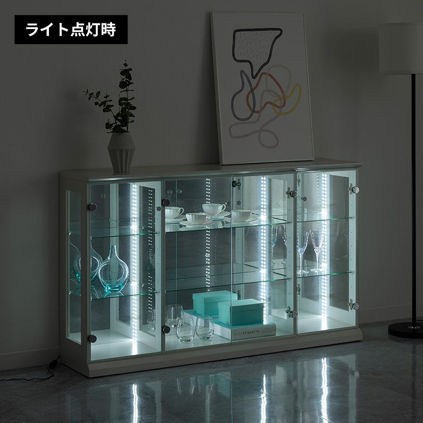 他の画像を見る 【設置無料】幅140cm ロータイプ コレクションケース VAGIO ガラス LED 照明付き 背面ミラー 横型 収納 棚 フィギュアケース コレクションボード 収納棚 飾り棚 おしゃれ 白 黒 送料無料 送料無料 組立設置付き 組立設置付き ¥ 56,900 税込 カートに入れる