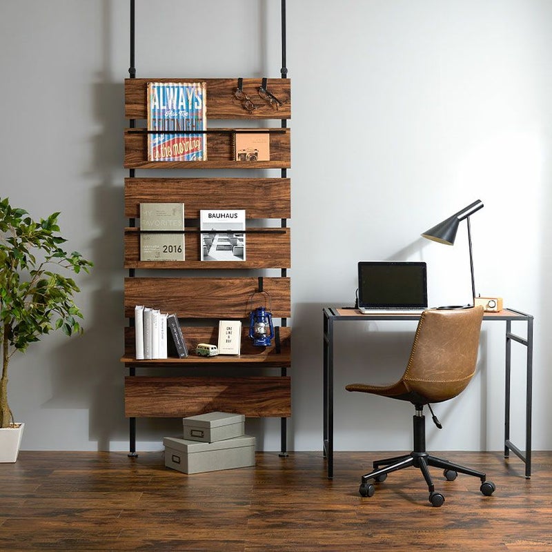 マガジンラックと棚板はお好きな位置に設置可能。使いやすいように入れ替えることができます。