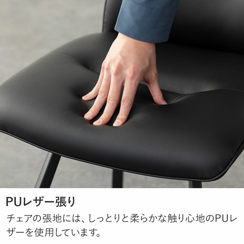 チェアの張地には、しっとりと柔らかな触り心地のPUレザーを使用しています。
