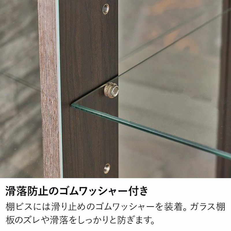 ガラス棚板を支える棚ビスには、滑り止めとなるゴムワッシャーを装着しています。