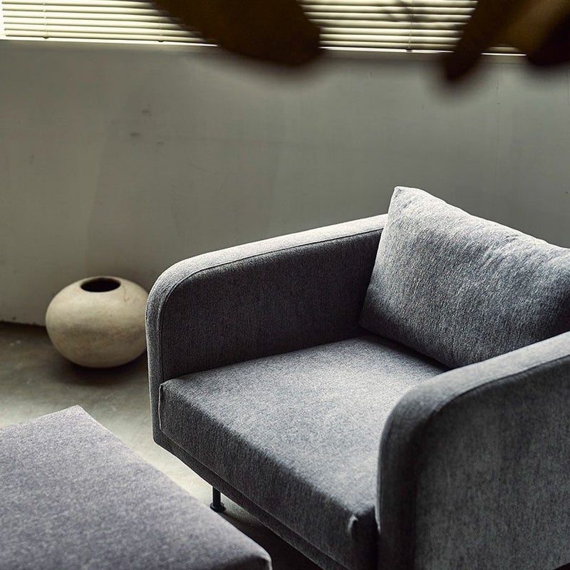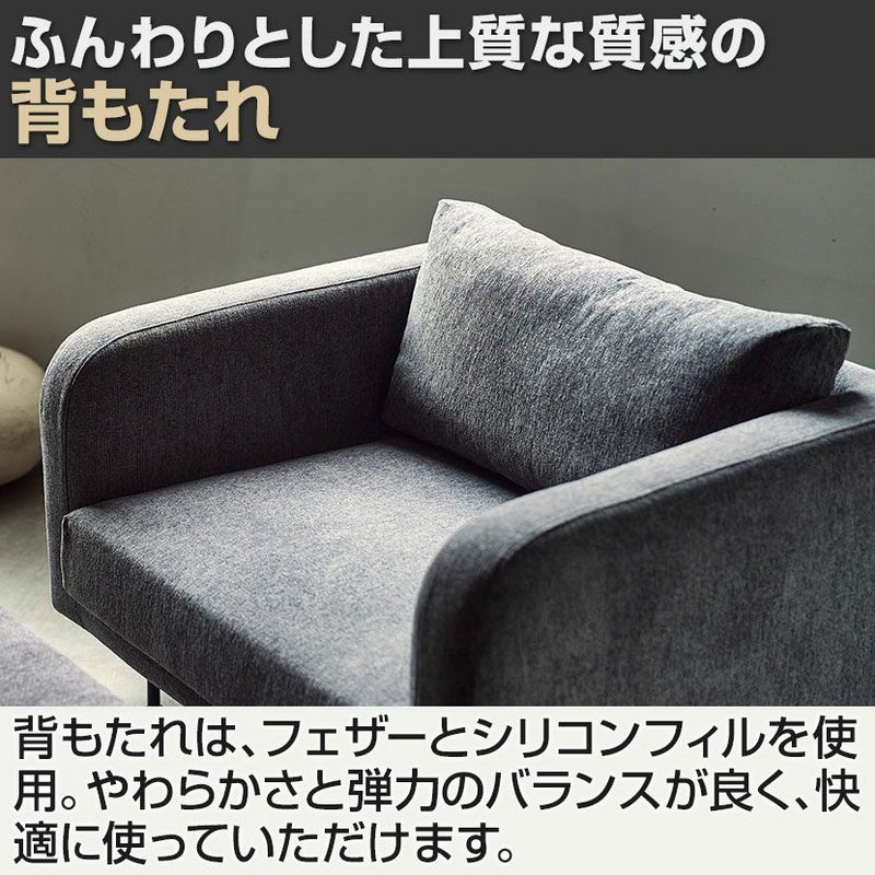 | 材質 | ファブリック / ポリエステル100% クッション材 / モールドウレタンフォーム、フェザー、シリコンフィル、ウェービングテープ 脚 / スチール(粉体塗装) |