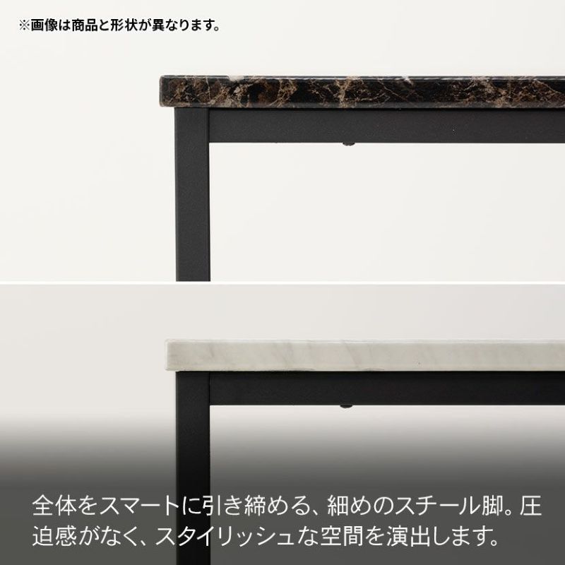 ●大理石柄の天板と細いスチール脚を組み合わせた洗練されたデザインです。