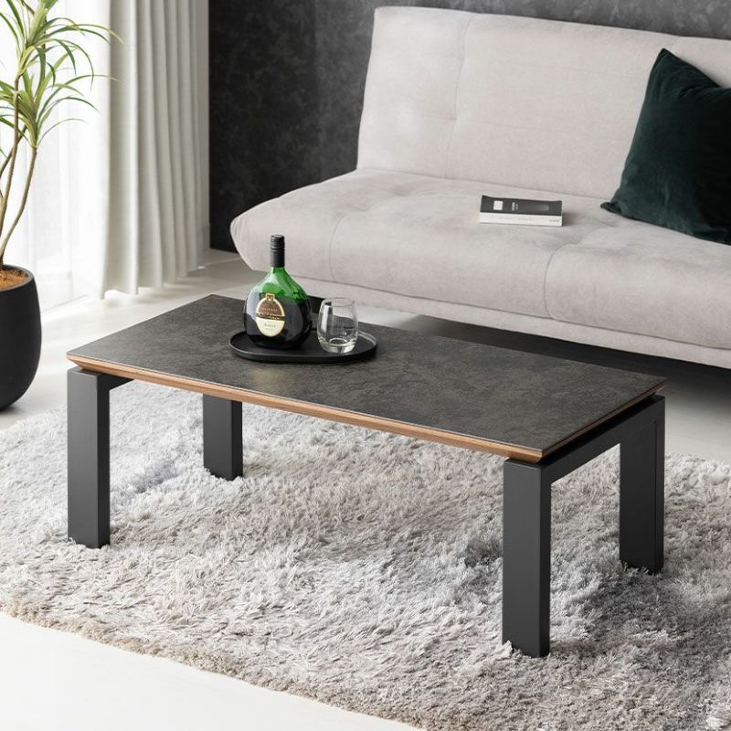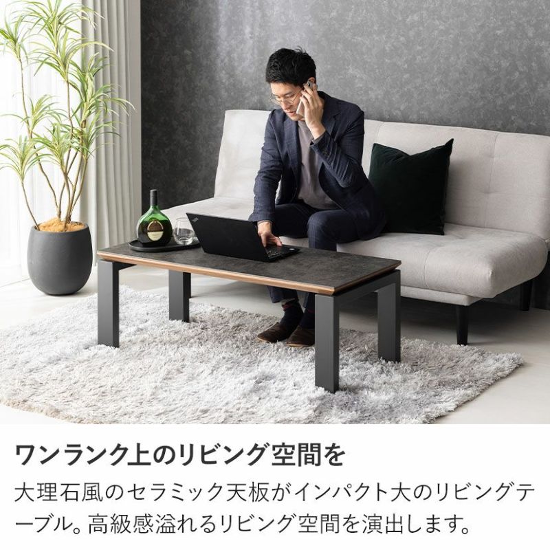 大理石風のセラミック天板がインパクト大のリビングテーブル。高級感溢れるリビング空間を演出します。
