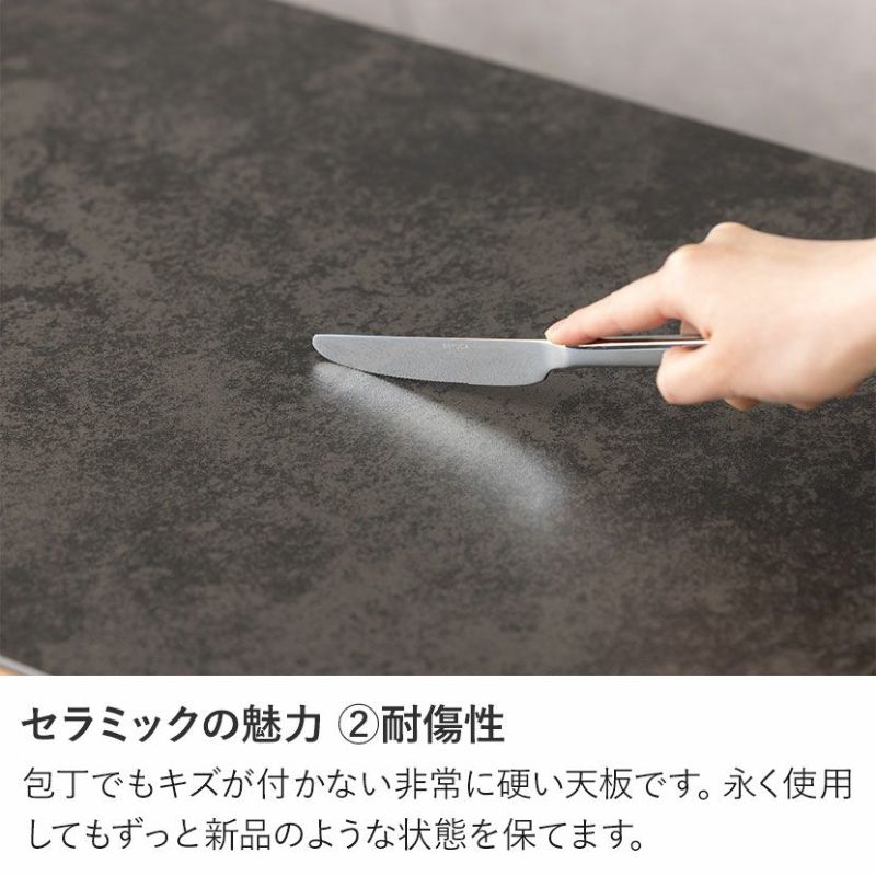 天板にはセラミックを採用。セラミックには様々な特性を兼ね備えた高機能素材です。