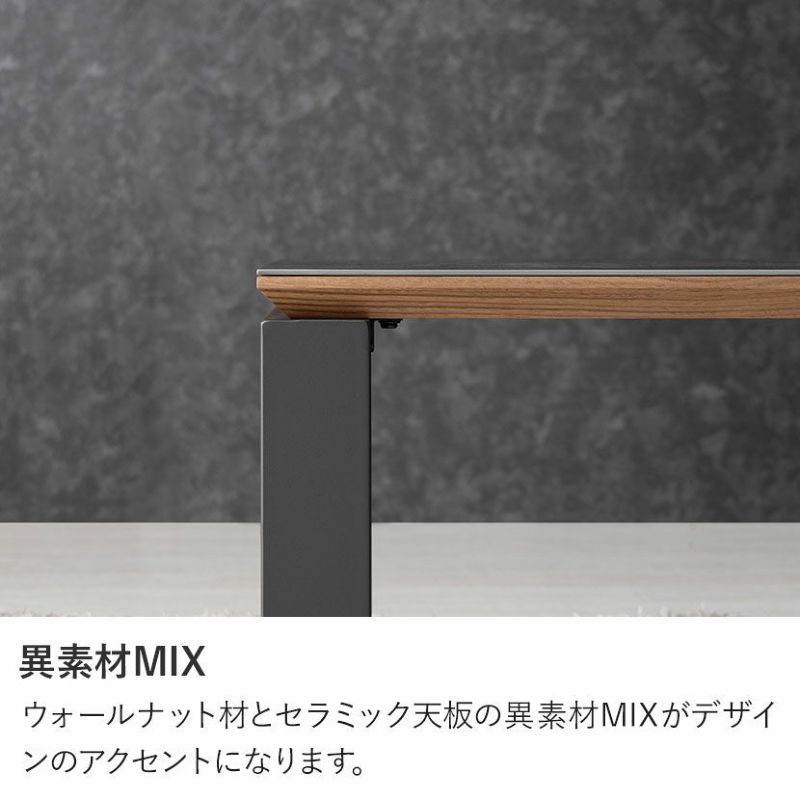 ウォールナット材とセラミック天板の異素材MIXがデザインのアクセントになります。