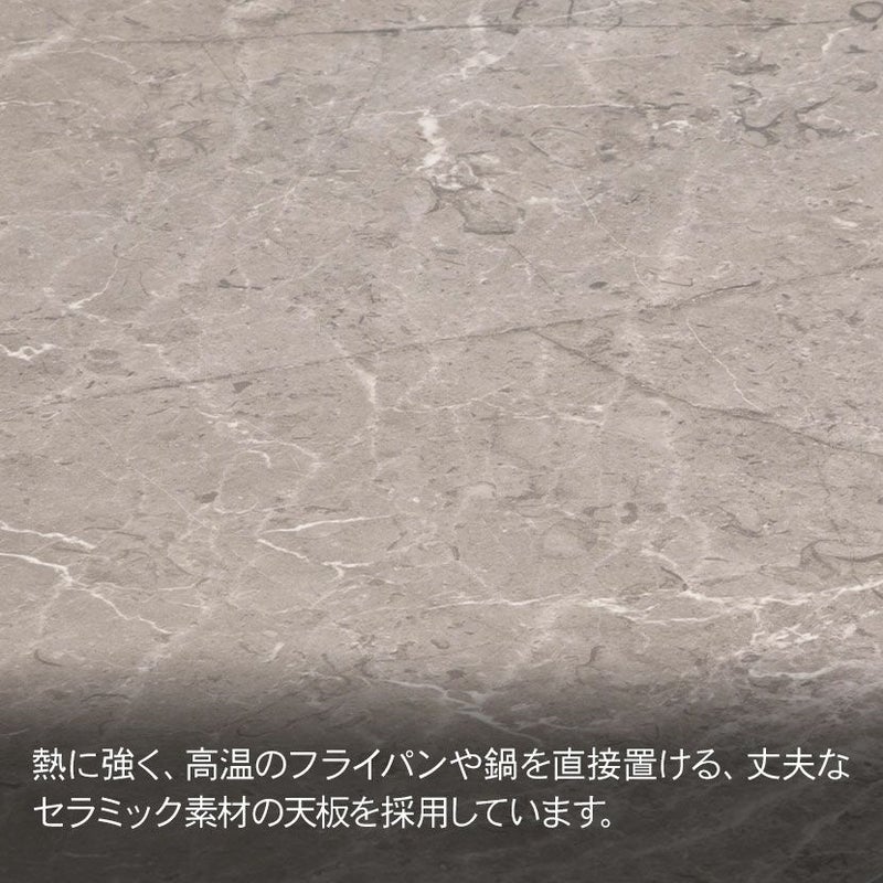 熱に強く、高温のフライパンや鍋を直接置ける丈夫なセラミック天板を採用しています。