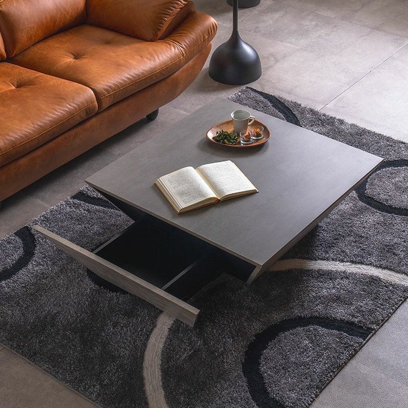 デザインを損なわないよう配置された引き出しは、リモコンや眼鏡、雑誌などの小物を整理するのに最適です。