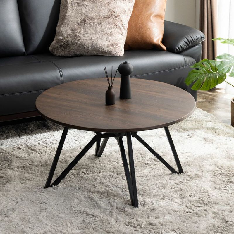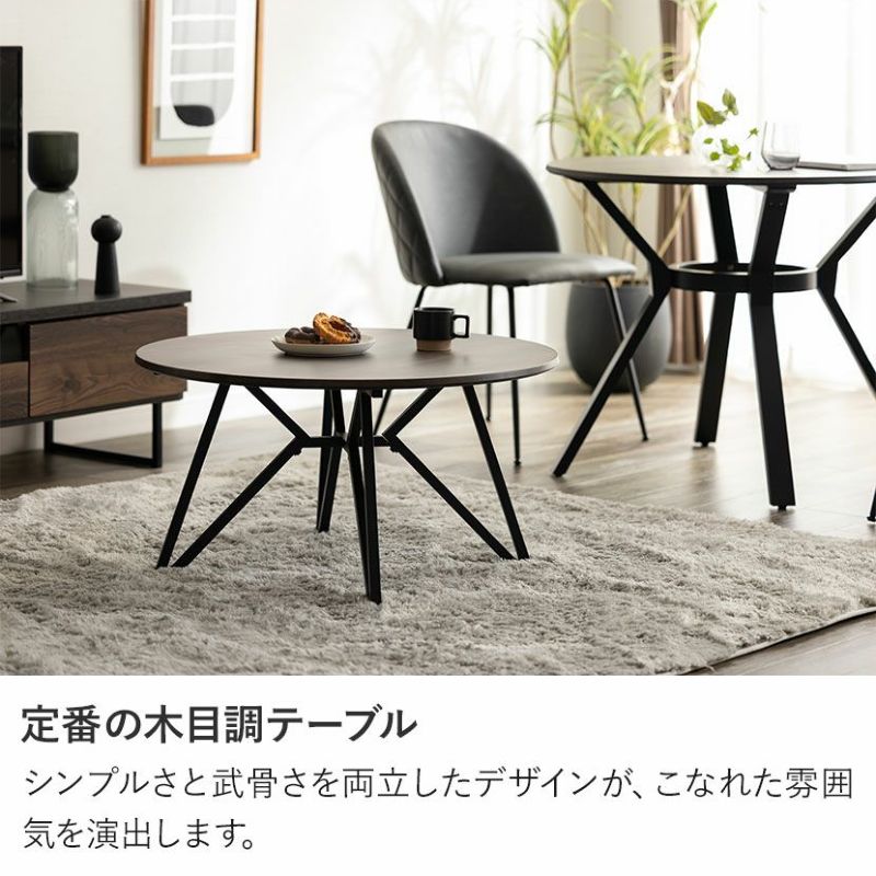 幅80cm 円形 リビングテーブル 木目 モダン ローテーブル スチール脚 テーブル メラミナイト メラミン 丸テーブル おしゃれ シンプル ブラウン ウォールナット柄