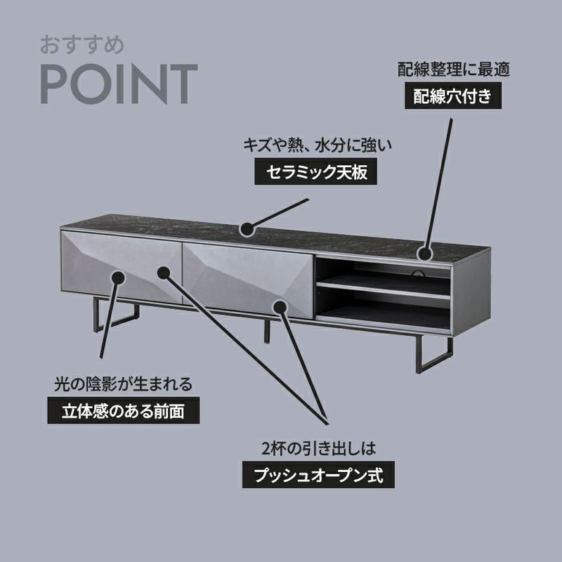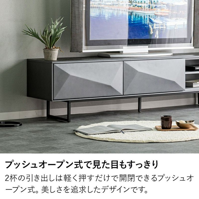 光の陰影が生まれ、単調になりがちなテレビボードに個性をプラス。