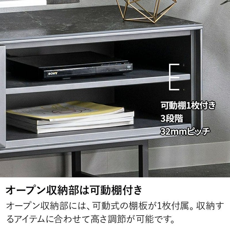 AV機器の収納やディスプレイに便利なオープン部には、可動式の棚板が1枚付属。