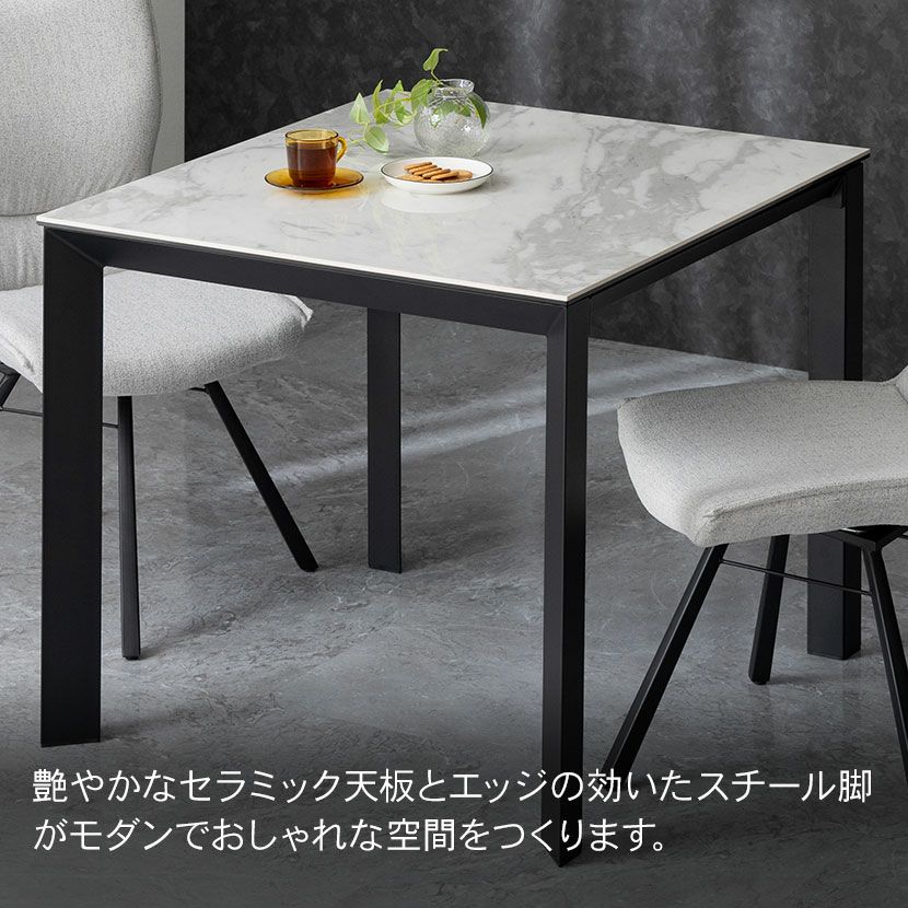 他の画像を見る 幅90cm ダイニングテーブル セラミック天板 耐熱 スチール脚 2人用 正方形 テーブル 食卓テーブル おしゃれ かっこいい モダン 送料無料 送料無料 ¥ 61,900 税込 カートに入れる