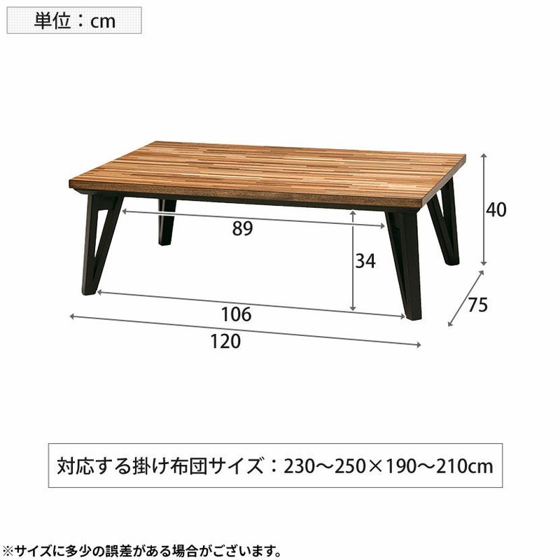 幅120cm こたつテーブル フラットヒーター 薄型 温度調節 家具調 天然木化粧繊維板 ウレタン樹脂塗装 リビング こたつ コタツ 炬燵 テーブル センターテーブル ローテーブル おしゃれ
