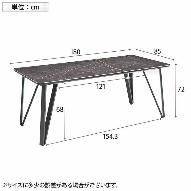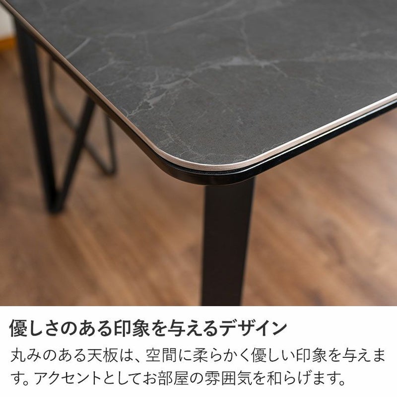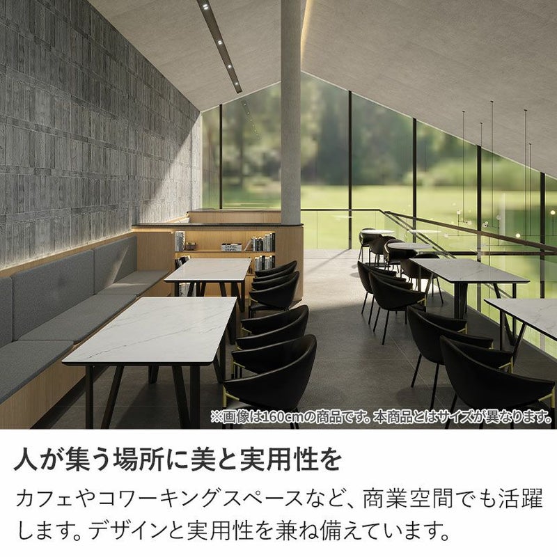 高機能なセラミック天板と、洗練されたデザインのスチール脚を組み合わせた、幅180cmのセラミックダイニングテーブル。